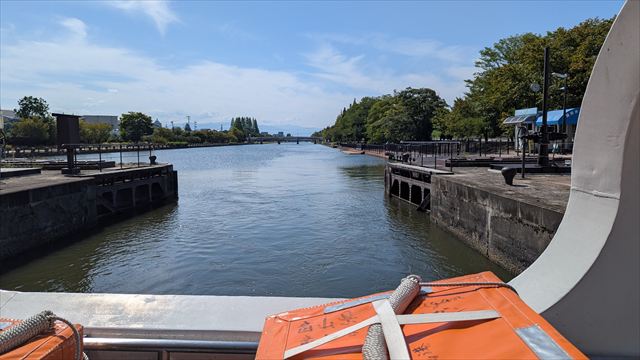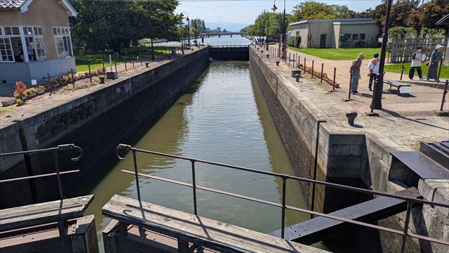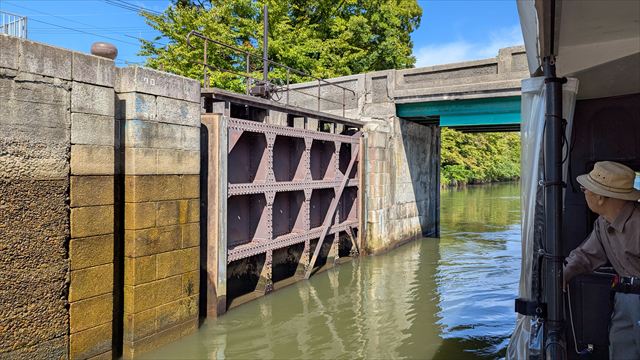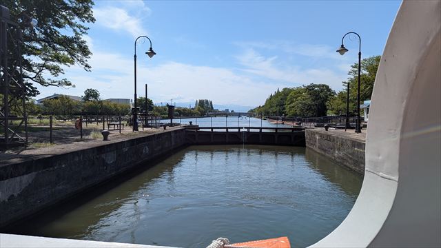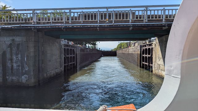 中島閘門までは15分ほどで2.5mの水位差の水のエレベーターは実に楽しかった。
