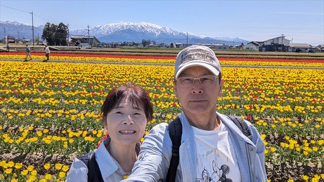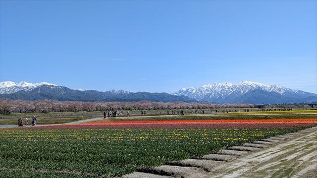 桜は散り始めだったがチューリップと菜の花は見頃だった。